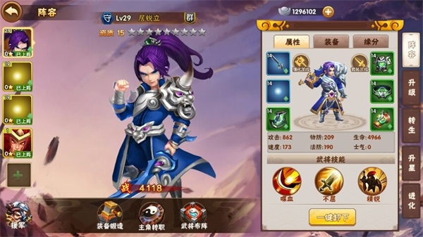 完善的装备锻造系统,可以强化兵书,提升装备的性能,让你的装备更强大。