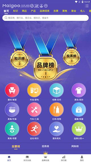 3、在品牌分类页面,用户可以查看不同领域的品牌榜单,如招商、网购、投票等。