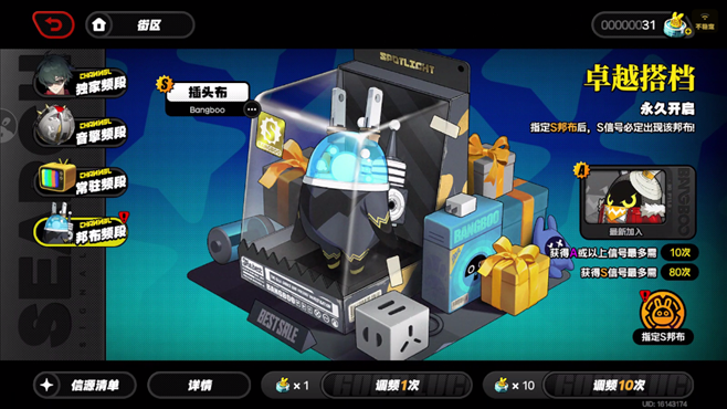 角色池包括独家频道(角色up池)、音擎频道(武器up池)、常驻频道以及邦布频道。