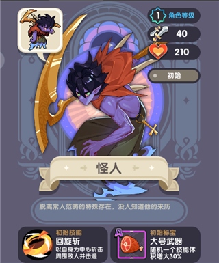 英雄评价:操作要求较高,十字斩带有击退效果,但初始秘宝要求玩家通过控制血量来提高攻击效率,因此对走位有一定要求,拾取道具时也要更加策略性。