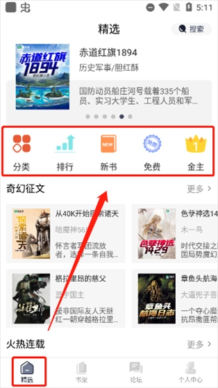 进入app后点击“精选”即可快速找到官方推荐的优质书籍。