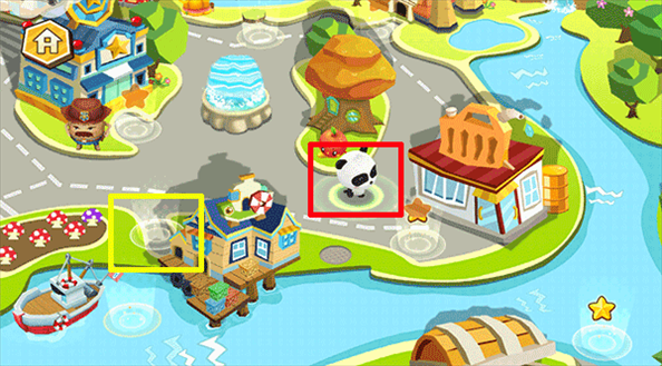 1、启动游戏后,在大地图上点击任意一个小熊猫的方向,小熊猫会朝那个方向前进。例如,点击某个位置后,蓝色框内会出现一个圆形小圈,表示该位置的目标。