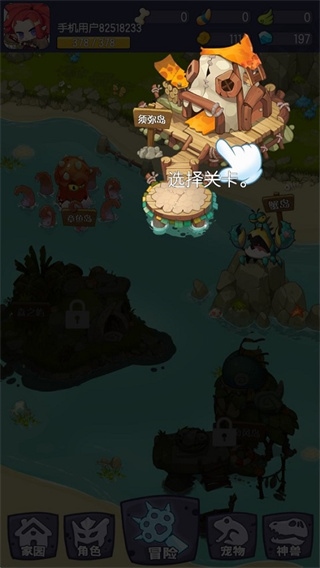 4、完成上述步骤后,就可以开始冒险了,点击底部的「冒险」按钮,进入冒险界面,选择关卡。