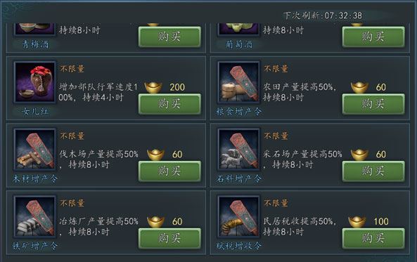 b、玩家还可以使用增产令,提升指定资源在8小时内的产量50%。