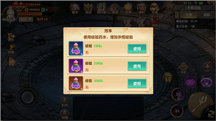 3、在副本中可以通过鼓舞和使用经验丹来提高经验获取效率。
