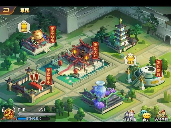 军团系统包含:军团商店、军团副本、军团大厅以及军团建设。军团建设分为初级、中级和高级建设。