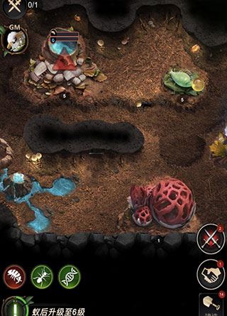 3、如果在未升级之前,蚁巢的布局杂乱无序,玩家可以点击蚁后查看布局,应用新的布局方式来整齐整理蚁巢,升级后将解锁新的区域。