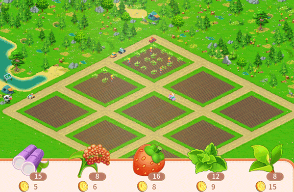 庄园中的农田数量会随着庄园等级的提升而增加,农作坊和订单所需的农作物只能通过农田种植。每块农田可以种植一种作物,而所有的农作物都需要用金币购买。随着玩家等级的提升,新的作物种类会陆续解锁,每种作物的价格也有所不同。每块农田最多可收获1次作物。农作物共有三个生长阶段:萌芽期、成长期和成熟期。成熟期即可收获,收获的作物会进入仓库。如果仓库满了,记得去卖掉或者升级仓库哦!