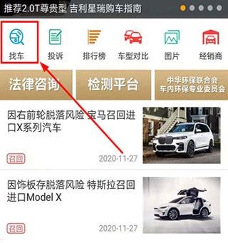 1、打开车质网app,在下载凯发游戏首页功能界面中找到并点击“找车”选项。