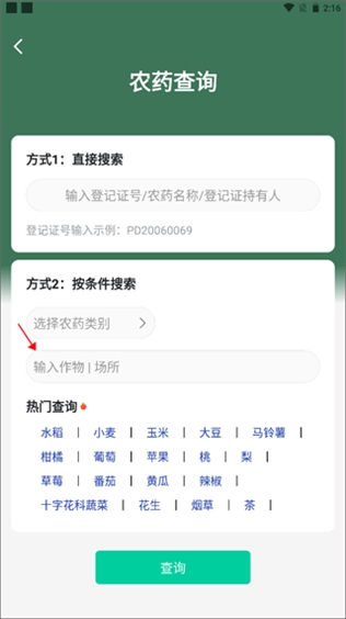 2、选择第二种查询方式,输入需要查询的农产品名称。