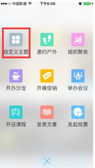 2、点击“发布活动”,选择互动吧提供的活动主题类型;如果没有合适的,也可以选择自定义主题。