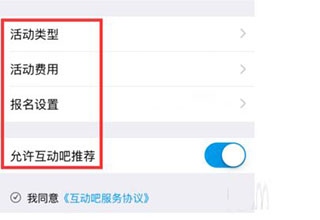 4、在活动创建页面底部,可以设置活动的类型,参与人数和费用限制。