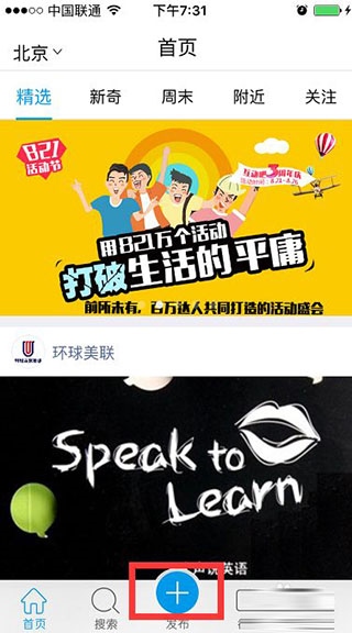 1、下载并进入app下载凯发游戏首页,你可以看到各种有趣的信息和活动展示。点击页面底部的“发布”按钮,免费创建活动。