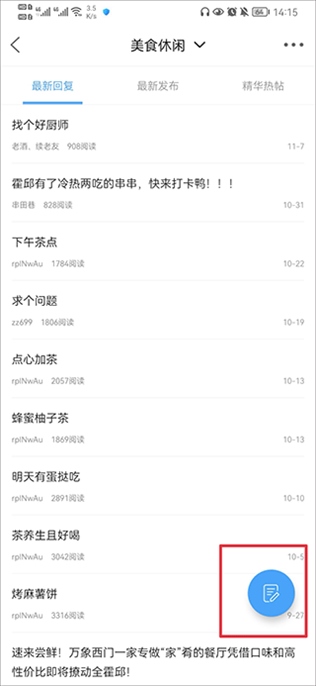3、进入所选板块后,点击右下角的发帖图标,编辑内容,编辑完成后点击发布即可