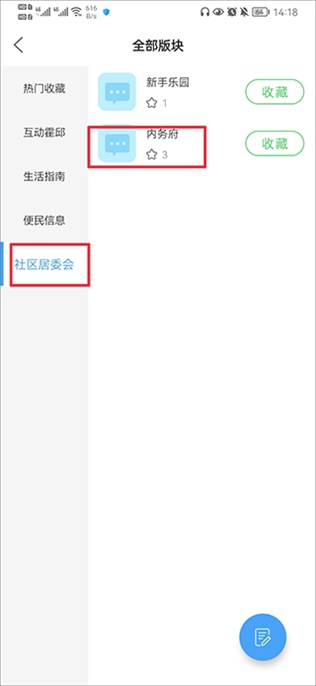 1、在“全部版块”中,点击“社区居委会”版块中的“内务府”