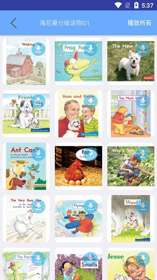4、此页面展示了该类型的所有绘本,点击任意一本进行下载,等待下载完成即可开始学习;