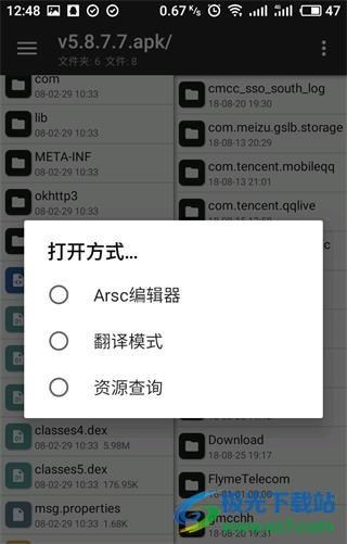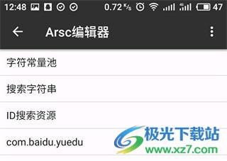 2、点击任意apk安装包,进入后,点击后缀为arsc的编辑器,所有内容都会显示在其中,进行修改;