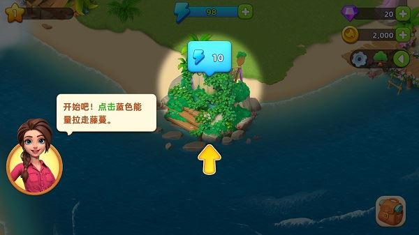 点击蓝色能量,清理藤蔓。