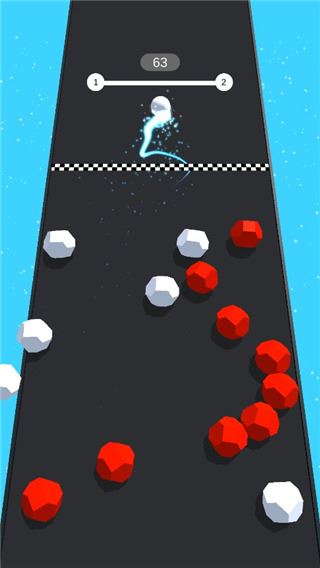 玩家可以通过滑动屏幕轻松控制球的方向,左右滑动以躲避前方出现的障碍。同时,需要避免与不同颜色的球碰撞,否则会导致挑战失败。