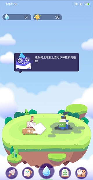 3. 使用水滴种植植物,拓展土地,装饰你的美丽家园。