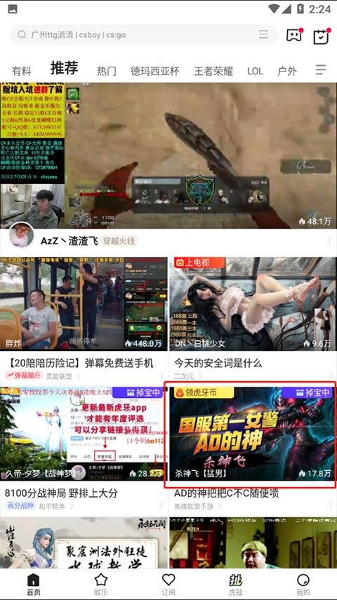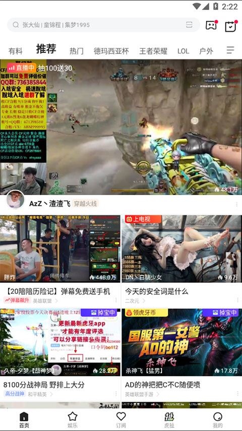 2、点击“推荐”,系统会为你展示热门的大神主播,快速观看。
