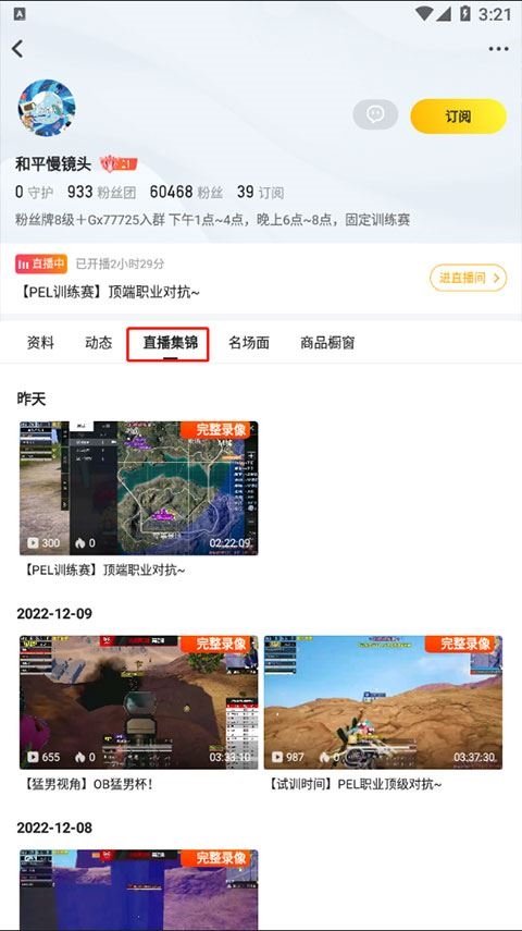选择“直播集锦”即可查看主播每日的回放内容。